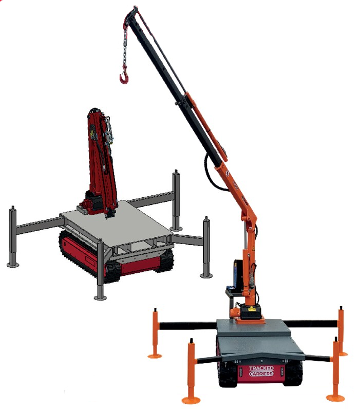 Due to the crane’s low weight, it is still possible to transport up to 1,500 kg dul the platform, making it ideal for self-loading activities and work in confined spaces and inaccessible areas. Operation is quiet and emission-free, like all Tracked Carriers products.