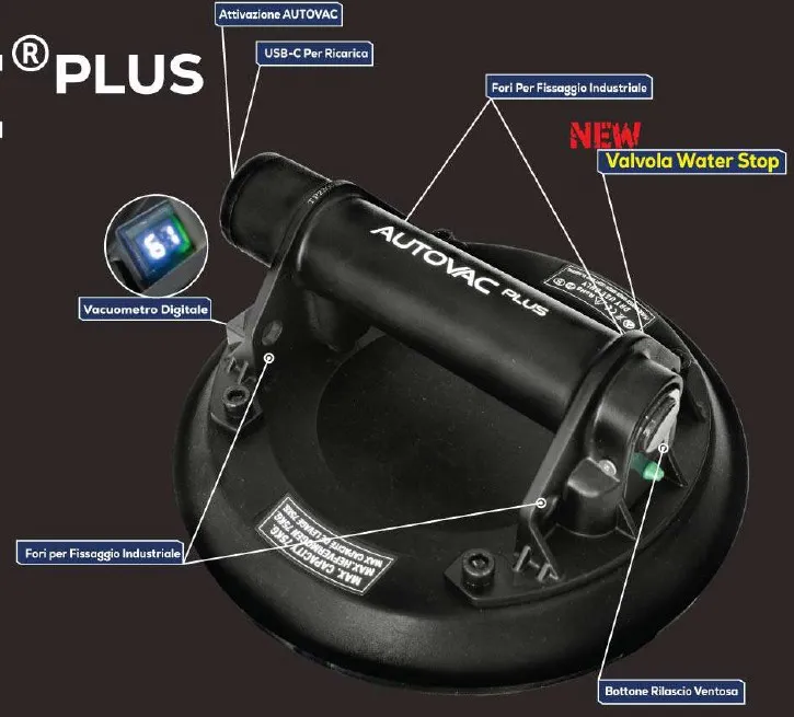 AUTOVAC Plus, is the new portable electric automatic suction cup designed to lift glass, ceramic tiles, and a wide range of materials with non-porous surfaces.