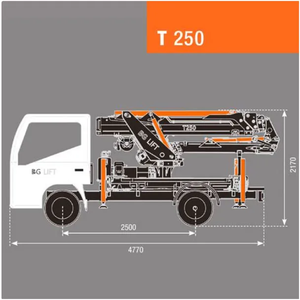 COMPACT: The BG-T250 is only 2170 mm tall, thanks to the low turret and JIB that folds under the main boom.