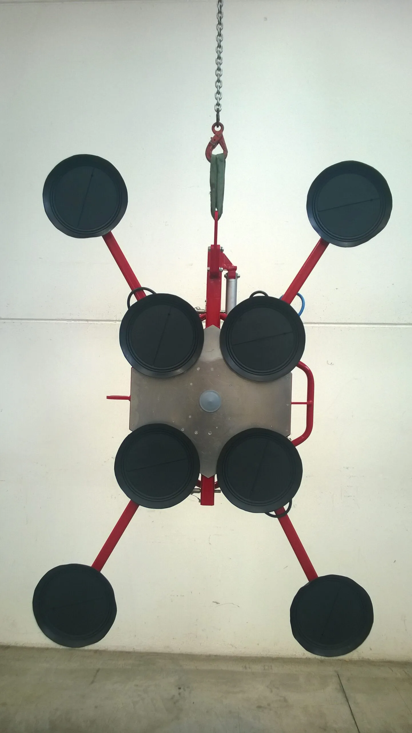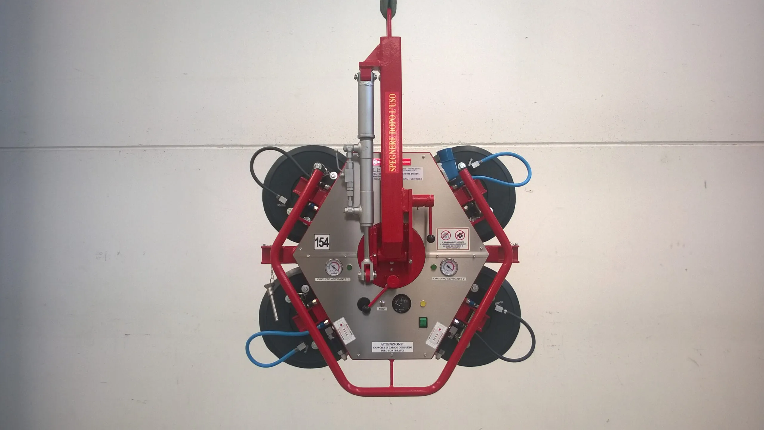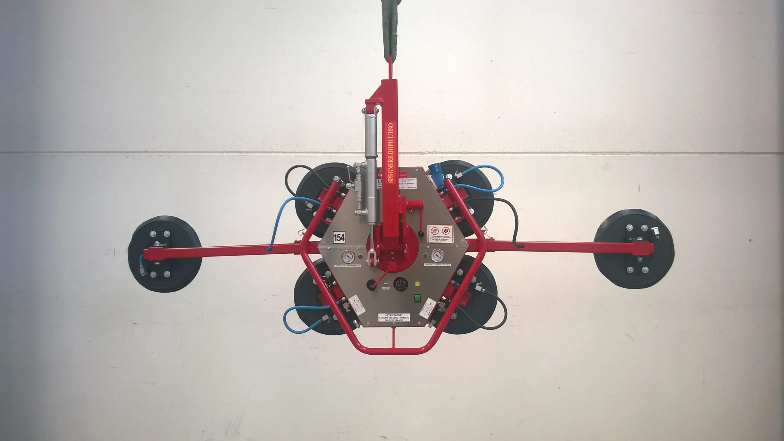 The manual DSKZ2/12V (600Kg) is suitable for handling glass, ceramics, steel and panels; thanks to its small size, it can also be transported in the trunk of the machine; it is equipped with a trolley for easy transport. The attachment is adjustable in three positions for better balancing.