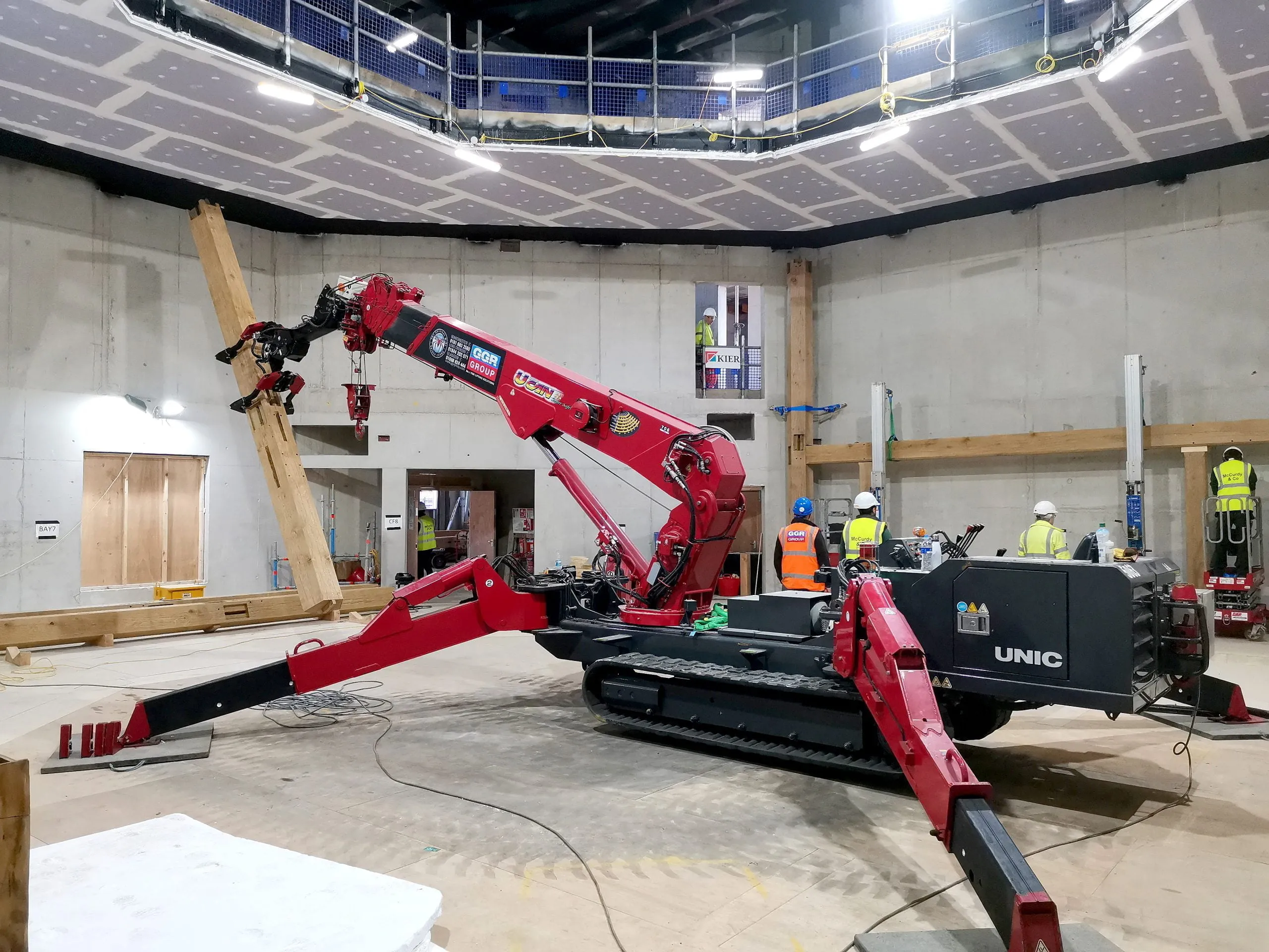 The UNIC URW-706/2 is one of the largest mini cranes in the range, with 6 tons of lifting power, but still compact enough for lifting in a confined space.