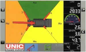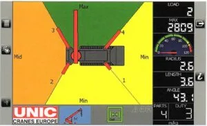 The addition of the variable and adjustable mini crane outriggers system managed by the new i4500 intelligent system, allows the machine, depending on the positioning of the outriggers ( more or less open ), to vary its maximum reach or block handling in areas considered dangerous. It also allows this mini crane to operate around fixed obstacles (“virtual room” function) to meet the lifting needs of each project.