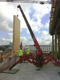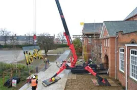 UNIC URW-706 with the capacity of 6 Tons was used outside the building to lift the glass and bring it inside through a window. The small UNIC URW-295 mini crane was transported through the corridors of the university to work inside the building.