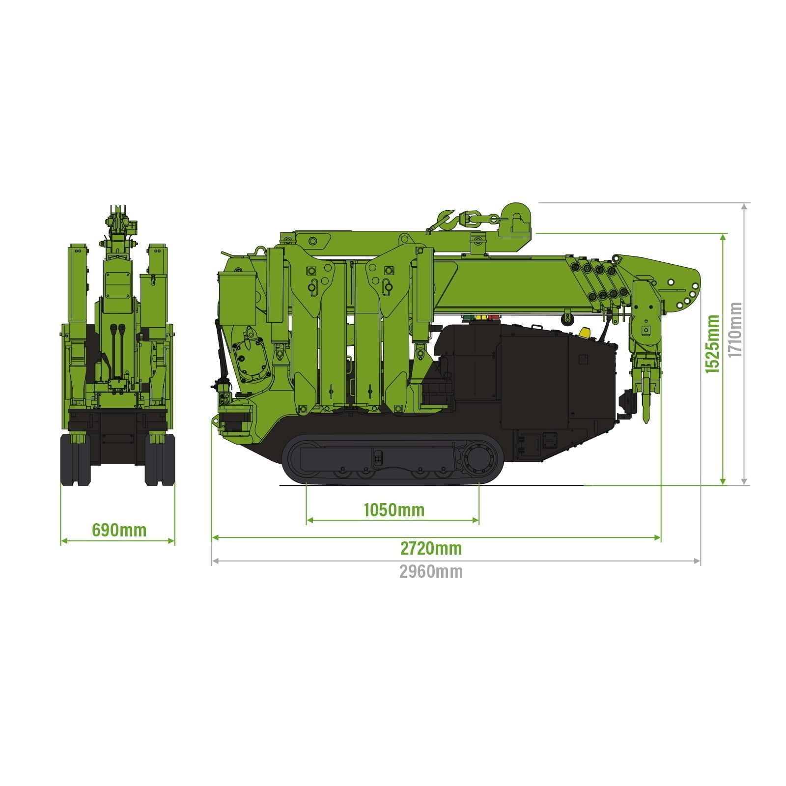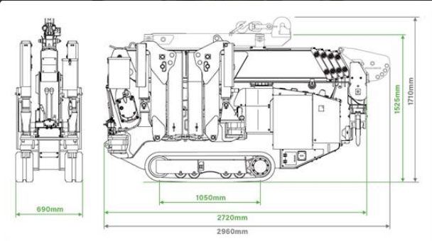 Questa mini gru è ancora abbastanza compatta da passare attraverso una doppia porta standard, ma vanta un’incredibile potenza di sollevamento fino a 2,9 tonnellate, senza compromettere l’efficienza operativa.