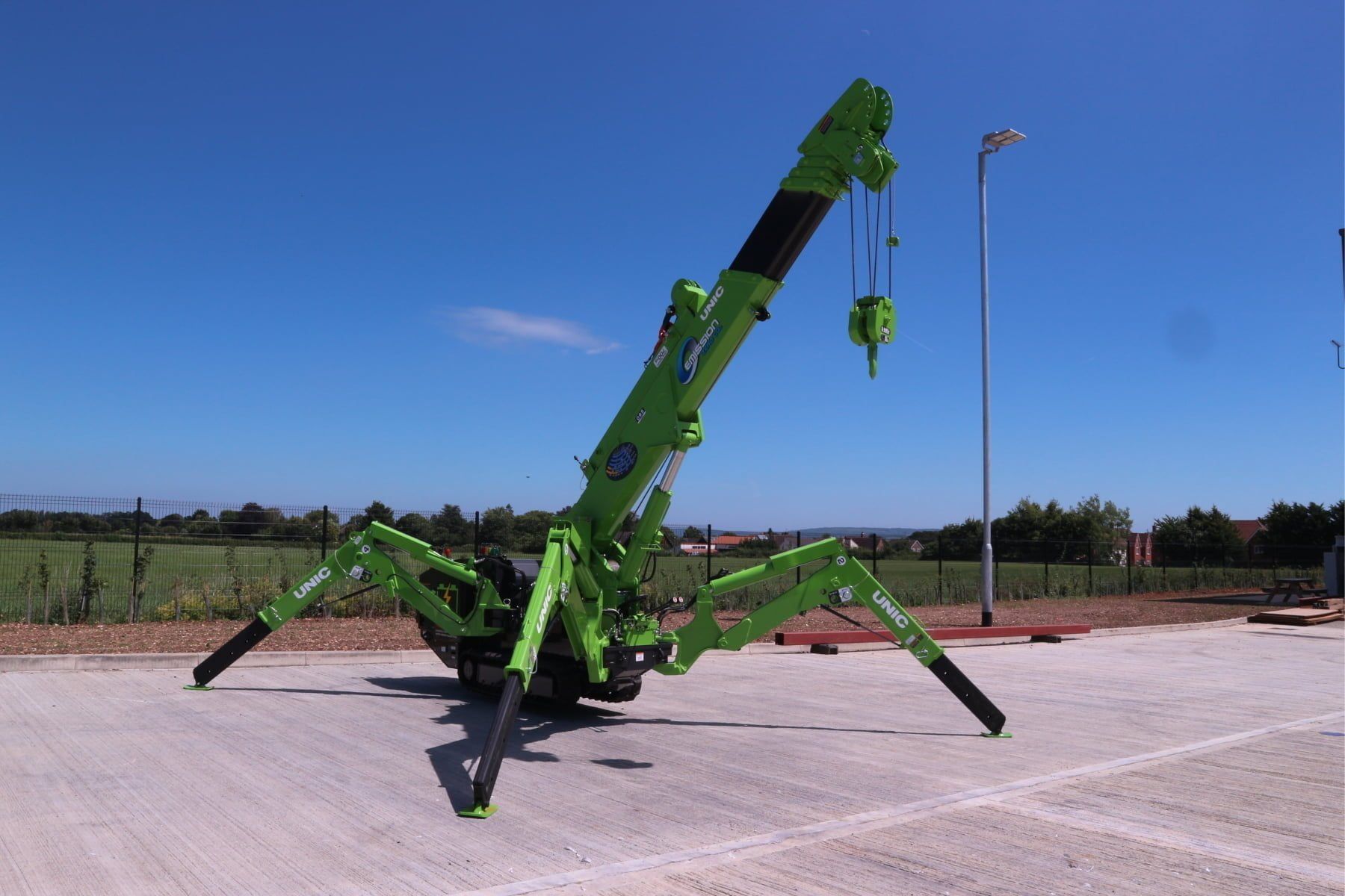 Questa ECO-295 CINGOLI, variante cingolata della mini gru UNIC a emissioni zero conserva tutti i vantaggi ecologici dei modelli eco con ruote standard, ma è in grado di viaggiare su terreni accidentati e operare su superfici irregolari.