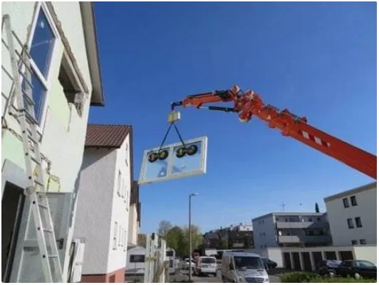 Compatto sistema di sollevamento, nato per semplificare la movimentazione di infissi completi di vetro.