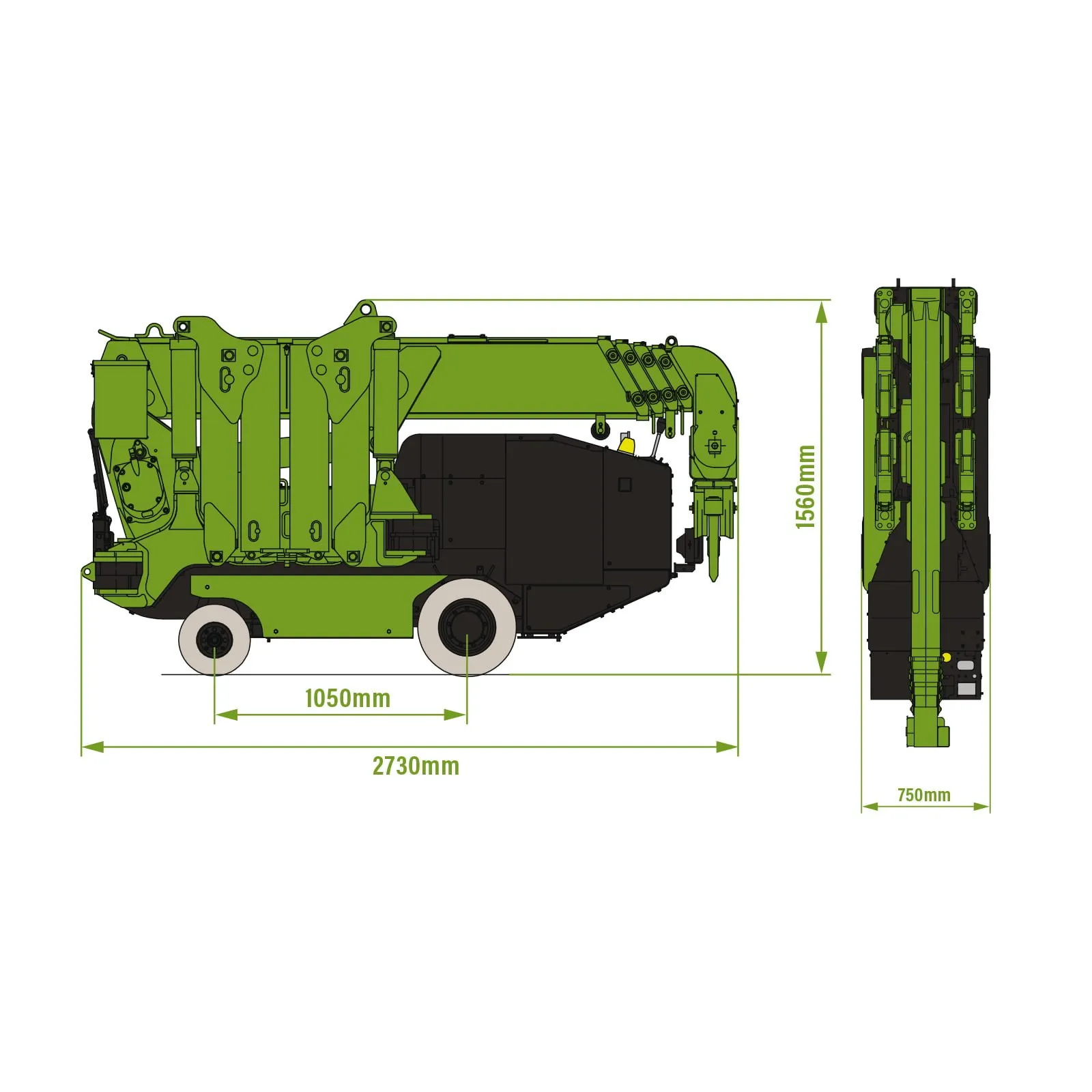 Questa esclusiva gru ragno è alimentata da un complesso di batterie ricaricabili, per un totale di 48 V senza emissioni inquinanti che impattano sull’atmosfera circostante.