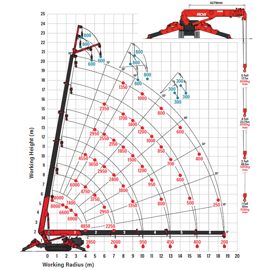 Con un’altezza di sollevamento di 19,5 m, è una delle gru con la maggiore capacità della gamma UNIC e ha una larghezza di soli 1.600 mm, il che la rende sufficientemente stretta da consentire l’accesso attraverso una porta a due battenti standard e sufficientemente compatta da operare in spazi ristretti e ristretti. È un vero esempio di potenza e versatilità in un design compatto e facile da manovrare. Per chi richiede ancora più flessibilità, la UNIC URW-806 offre un gancio di ricerca opzionale e un falcone di 3,1 m, che le consentono un’altezza massima del gancio di 22,7 m. Questo rende la gru ancora più versatile per le attività che richiedono uno sbraccio maggiore.