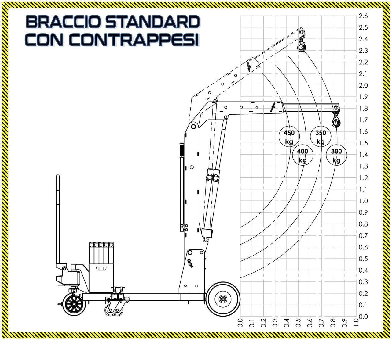 Permette il sollevamento di carichi fino a 450 kg di peso e di notevoli dimensioni. E’ dotata di un pratico timone che ne consente un agevole spostamento all’interno della zona di lavoro.