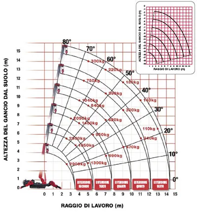 La URW-376 è caratterizzata da un braccio telescopico-idraulico a sei elementi, che consente di raggiungere un raggio di lavoro massimo di 14,3 m.